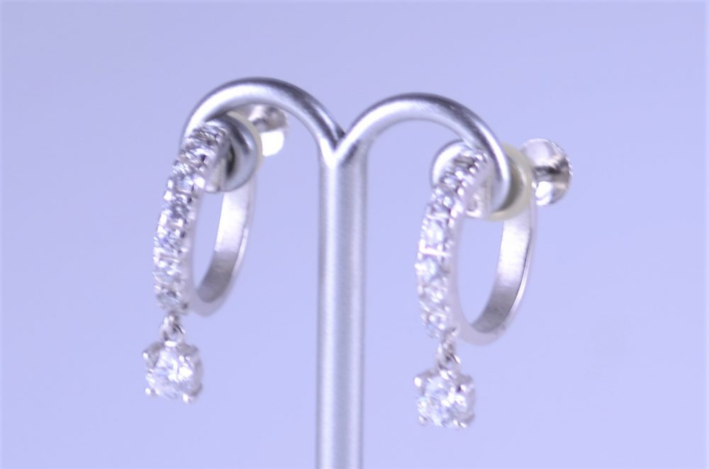 ダイヤモンドが多数あしらわれたプラチナのイヤリングをお買取させ頂きました。愛知県知多市よりご来店です。イヤリングの他、リング(指輪)、ネックレス、チョーカー、ベルトのバックル、バングル、ブレスレット、ブローチ、ペンダント、メガネフレームなどのアクセサリー類をお買取、質預かりしております。女性 スタッフが、一点一点丁寧に査定させていただきます。名古屋市南区の老舗質屋かね丈質店にぜひ一度お越し下さい。